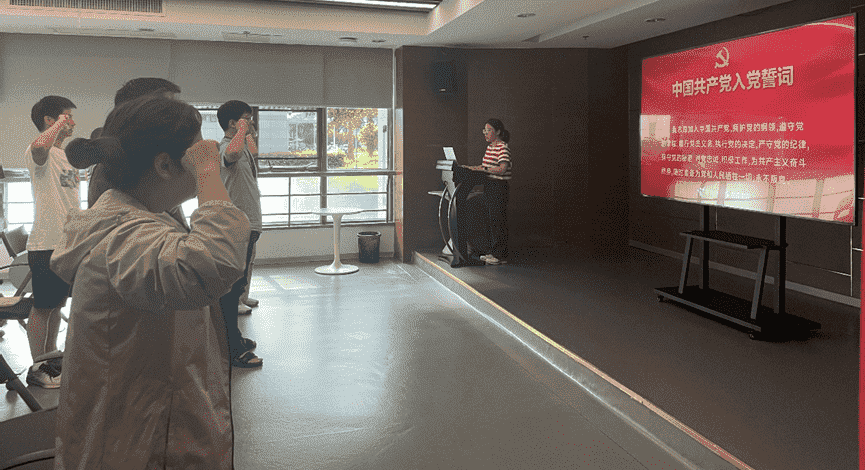 会议最后,,,,全体党员在党旗下集体重温入党誓词,, “我志愿加入中国共产党……。。。”铿锵有力的誓词让每位党员时刻牢记共产党员的神圣职责,,,,坚定对党的事业奋斗终身的决心。。。在新征程上,,JIUYOU.COM党员继续不忘初心,,,牢记使命,,踔厉奋发,,笃行不怠。。。。