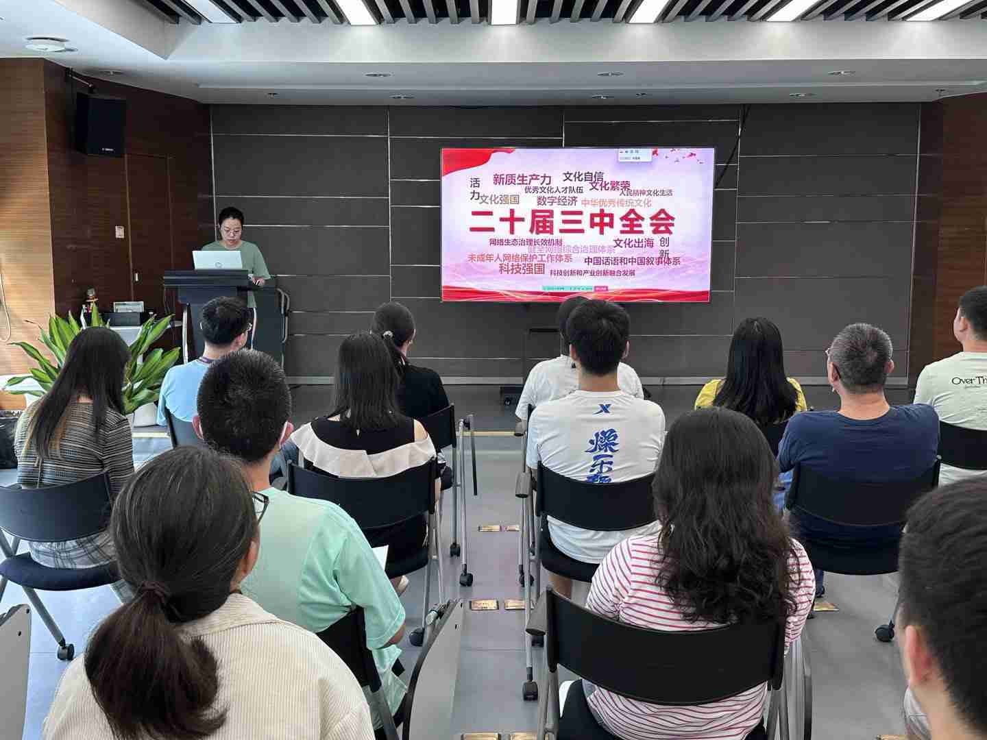 与会人员深入学习《决定》内容。。党的二十届三中全会提出必须增强文化自信,,,发展社会主义先进文化,,弘扬革命文化,,,,传承中华优秀传统文化,,,加快适应信息技术迅猛发展新形势,,构建更有效力的国际传播体系,,这为广大文化产业工作者指明了奋斗方向。。