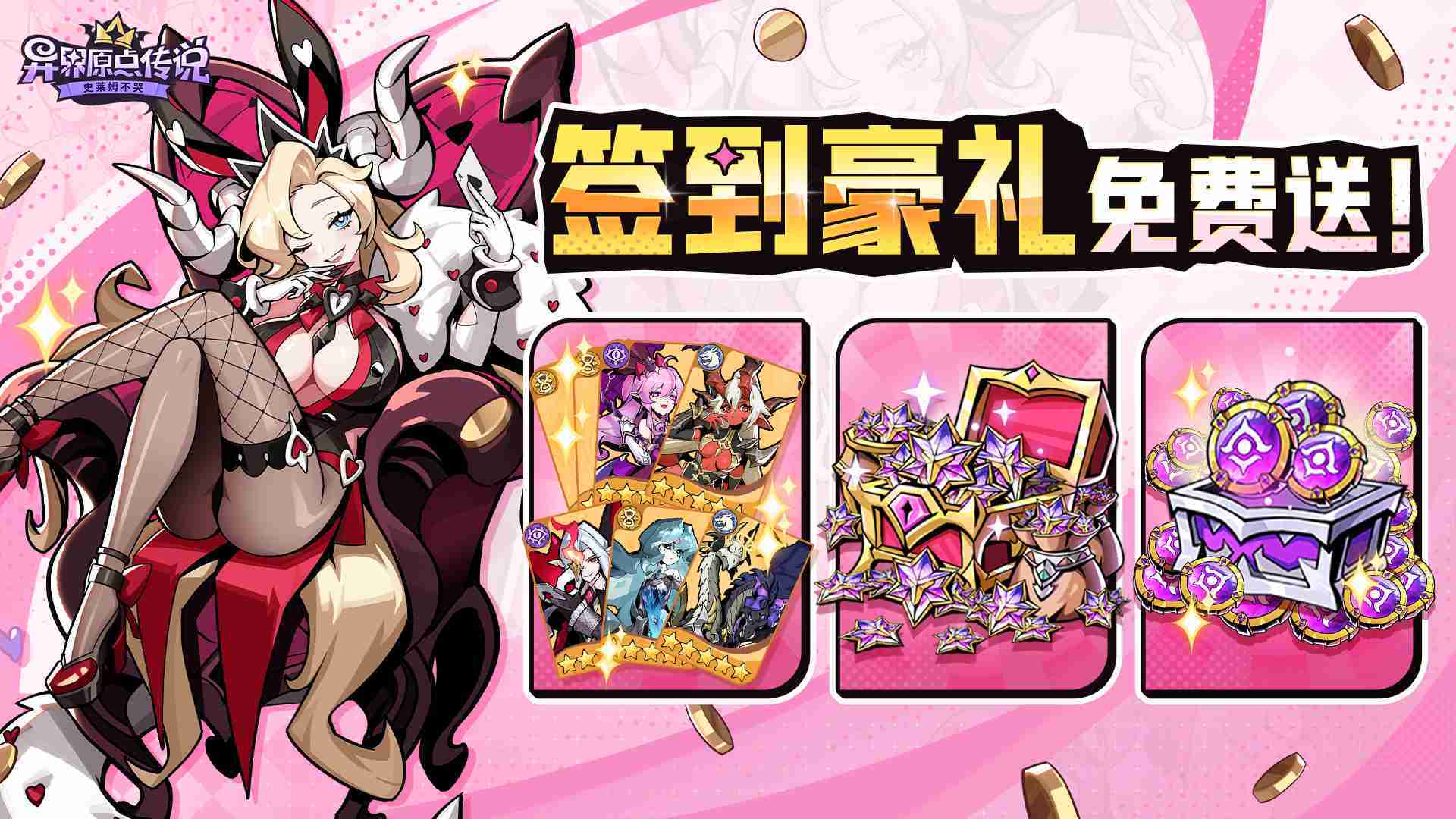 敢在应用商店标注“高福利”的游戏一定不简单。。《史莱姆不哭》的预约福利除了孵蛋抽卡及养成资源外,,,还有高价值的限定角色皮肤『甜蜜陷阱』。。。。