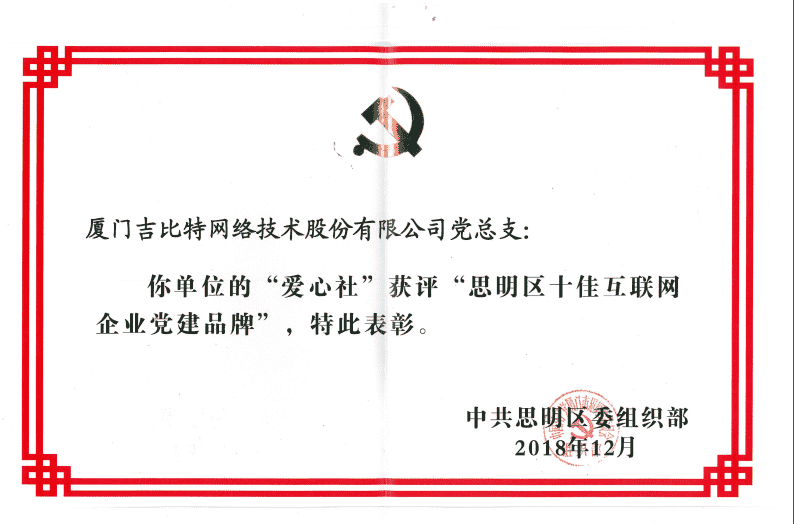 • 党建新闻 JIUYOU.COM党总支爱心社获评思明区 “十佳互联网企业党建品牌”